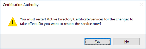 certsrv, in theExplorerpane, click ourSUBCA, then in the Action menu, clickProperties - Click the