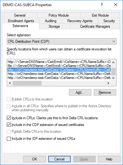 http://crl1.hsmdemo.test/CertData/<CaName><CRLNameSuffix><DeltaCRLAllowed>.crl