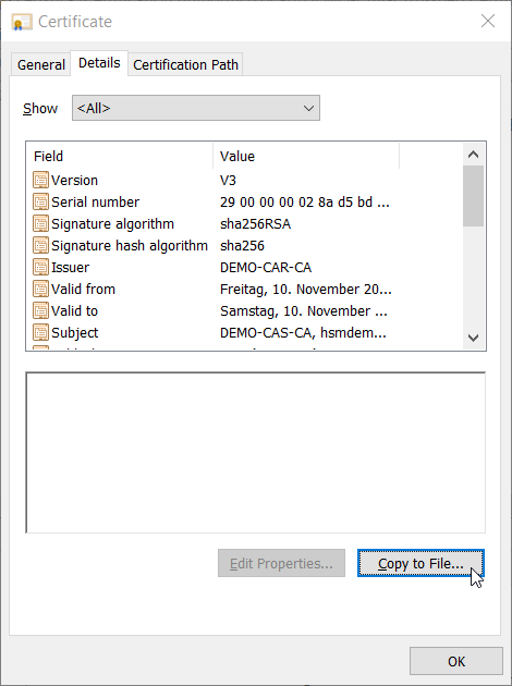 In case you get the error message Cannot verify certificate chain. … consult Troubleshooting. Start the CA, if not started automatically.