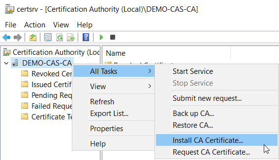 .p7bcertificate followed by starting the CA service.