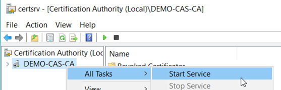 - The following shows that once the CA service has successfully started, the icon is now with a green check mark.