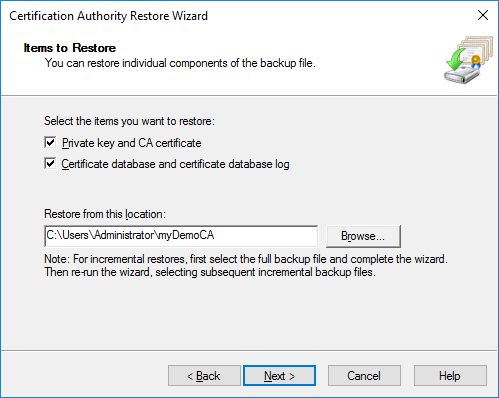 certificate, private key, database, and registry settings(see Backup AD CS)