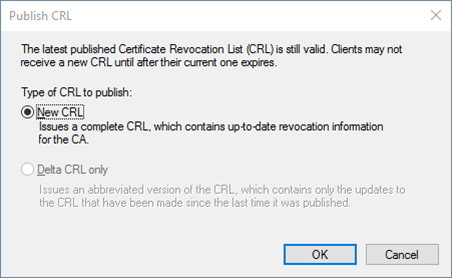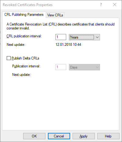 OKandconfirmto restart the service. - While Root CA is offline we will increase the CRL publication interval to 1 year for our example.