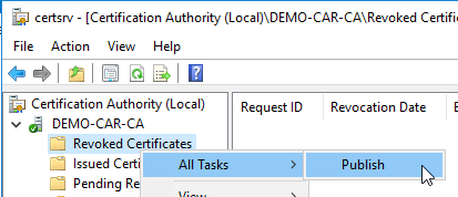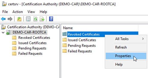 certsrv, in the Explorer pane, click our root CA, then in the Action menu, clickProperties - Click the