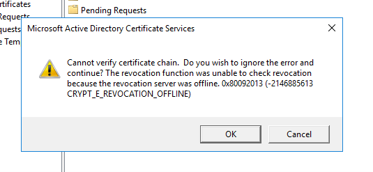 In case you get the above message, check if you can retrieve the certificate revocation lists from the known URL or the certificate itself with: