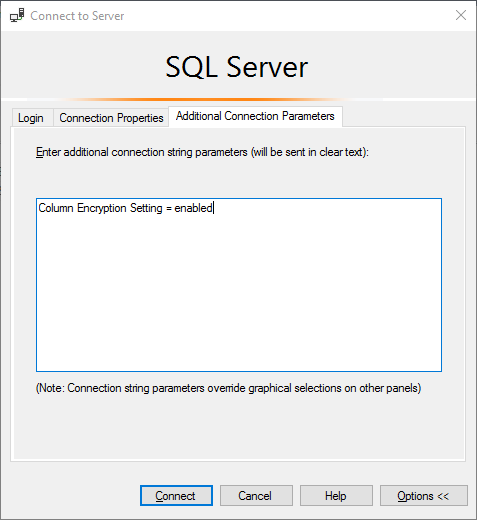 Additional database connection parameters are required to show encrypted columns in plaintext.