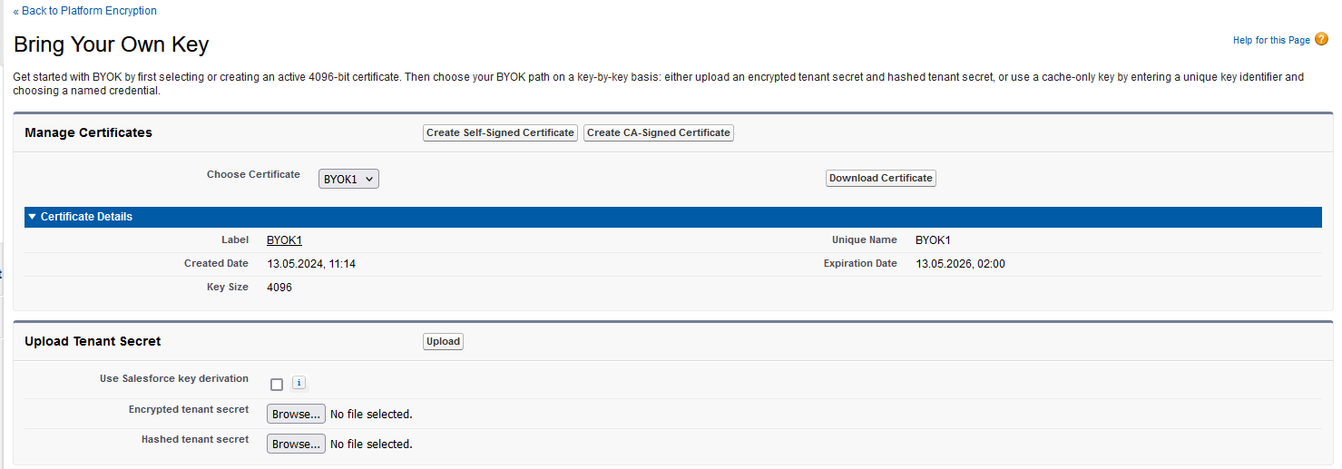 If you don’t want Salesforce to derive a data encryption key for you, you can opt out of key derivation and upload your own final data encryption key. For more information, see Opt-Out of Key Derivation with BYOK in Salesforce Help.